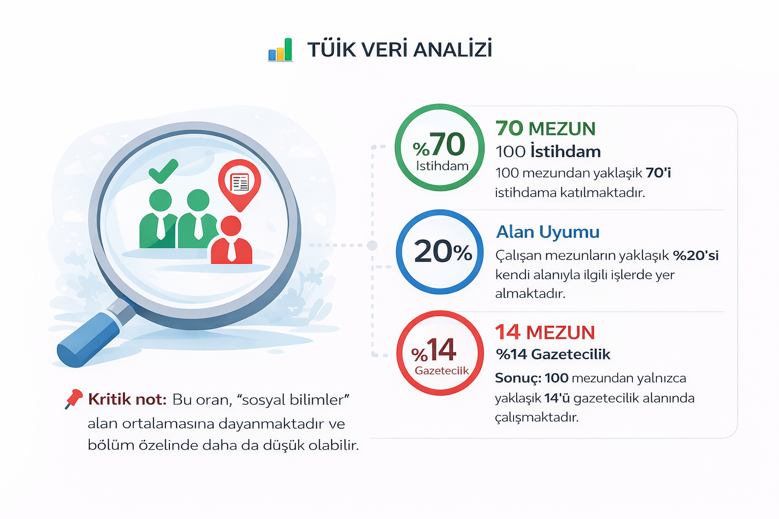 Gazetecilik mezunları, iş piyasasında yalnızca kendi bölümleriyle değil; iletişim ve içerik üretimi odaklı geniş bir kitleyle rekabet eder.