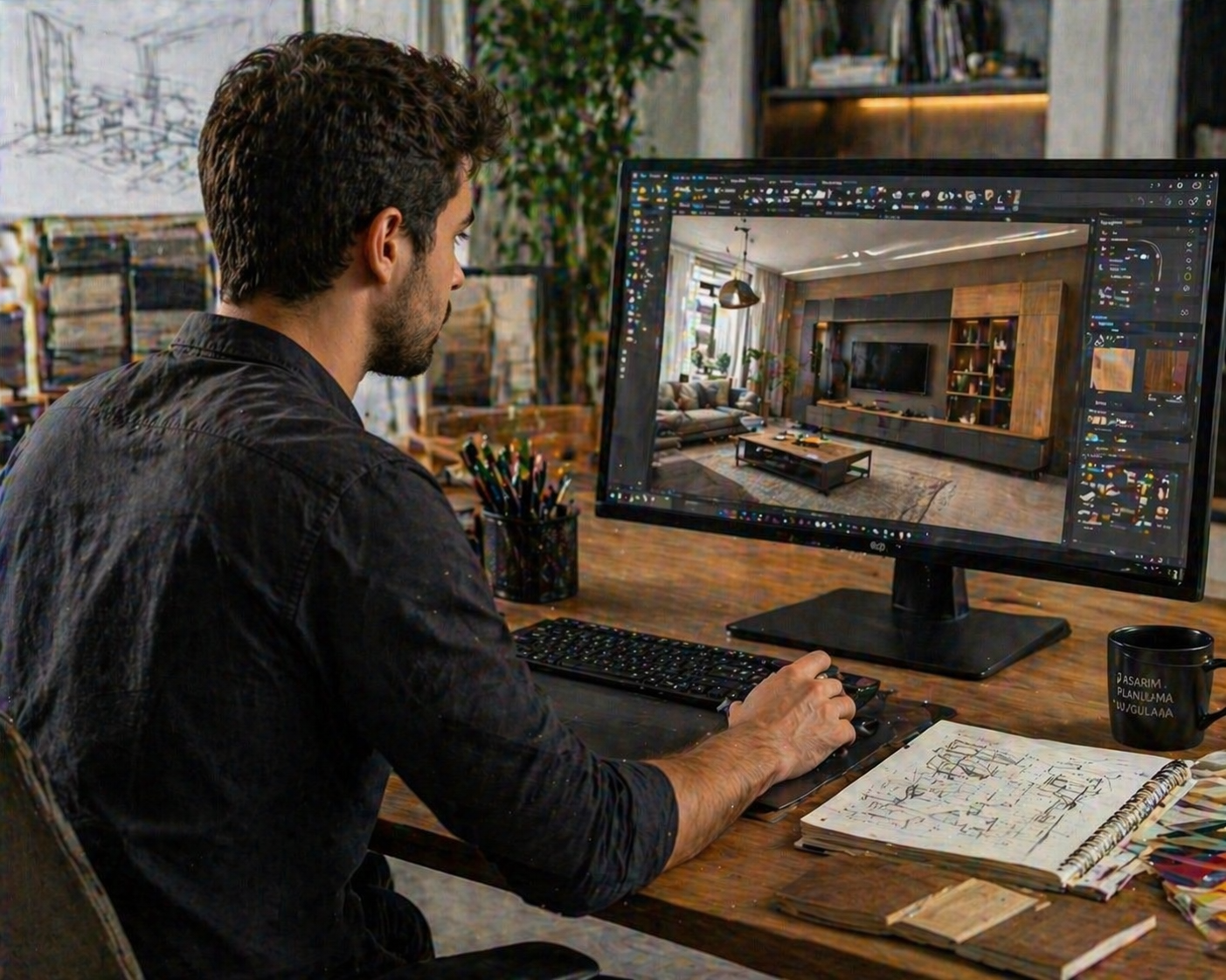 • ofiste çizim ve proje hazırlığı
